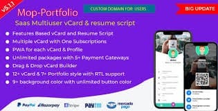Mop – SaaS vCard / Portfolio / Resume / Digital Business card is a versatile and user-friendly software-as-a-service (SaaS) solution that enables individuals and professionals to create stunning virtual business cards, portfolios, resumes, and digital business cards. With Mop, users can showcase their skills, experiences, and achievements in a visually appealing and interactive manner. The platform offers a range of features that empower users to create a strong online presence and leave a lasting impression on potential clients and employers. The following is a comprehensive list of features offered by Mop: